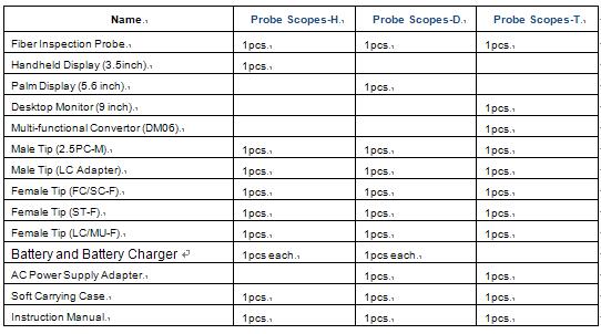 | ST-70 Fiber Optic Video Microscope ST-70 includes ST-700A Probe and 3.5inch display for the whole set. With high performance of quick check and consist alignment, it displays enlarged fiber end face image of high definition and have scratches/dents/chips/dust easily figured out without seconds. It offers an effective and practical solution to the network maintainance work or QA production of fiber kits by manufacturers. ST-70 probe is of a high quality inspection probe. Compared with the traditional tools, its unique single-way of focus control greatly simplifies the work. No matter left or right hand, back or forth operation, it can quickly get the end face inspected and have image displayed easily in one-way without seconds. The wheel design of focus control also help improve the efficiency for operation, the magnet of the display assists display be hung firmly on the machine room for more convenience, LED quality of source power assures a sharper and clearer image for scratches/dents/chips check, brightness/contrast control get the image easily adjusted, all these guarantee the user a quicker and learer fiber end face inspection. The probe can also be integrated with both digital and analog functions as 70B probe for dual or triple use to connect either laptop, display or OTDR, which offers a versatility and configurability for the greatest convenience use. Plus, precise cone design of stainless steel tips make 35 additional tips available to the probes for assorted connectors inspection such as LC-APC in-adpator/E2000-APC in-adaptor, MPO in-apdatpr etc., special connectors and lengthened/angled tips help solve more complicated on-site inspection of back of patch panel or hard-to-access places. Tips can also be customized to meet different clients needs. Monitors Introduction According to actual inspection requirements, there are three type monitors normally can be required to work with the Fiber Inspection Probe. Below are the details of those monitors. ![]() 1) H Type (3.5inch Display) Magnification200x Resolution: 1um Display typeTFT-LCD25000pixel Image diameter25 mm Brightness and lightness adjustable, convenient for observing. Battery Life: 5~6 hours Powerlithium battery and battery charger 110~220V / 12V Output port: USB2.0 (Optional) 2) D Type (5.6 inch Display) Magnification360x Image diameter45 mm Brightness and lightness adjustable, convenient for observing. Battery Life: 3 hours Power SupplyBattery and AC power supply can be alternative 3) T-Type (9 inch Monitor) The image which detected by Fiber Inspection Probe can be transmitted to desktop monitor by DM06 multi-functional convertor, in order to make the image more clearly. The T type Fiber Microscope is the most applicable in the Optical Components Producing and Inspection! Magnification600x Image diameter81 mm Power Supply AC Power Supply Adapter The main functions of DM06: 1. Input port of Fiber Video Microscope 2. Connection Port of DC power 3. Video output port 4. Input port of Video (Such as desktop Microscope) 5. Switch Button ST-70 Portable Microscope.pdf![]() Standard Configuration ![]() Optional Items: ![]() |
