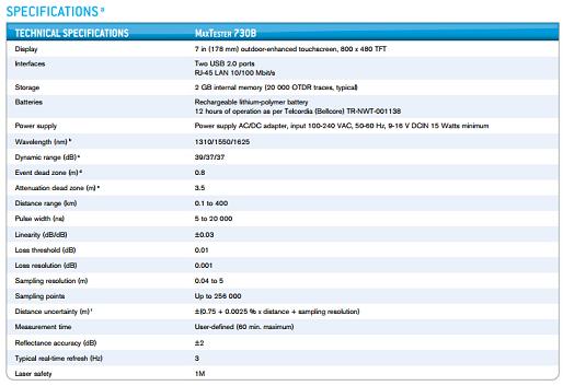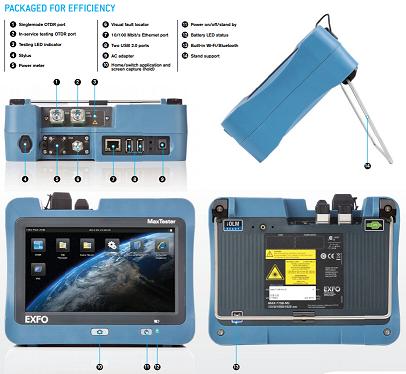 | The Handheld OTDR... Reinvented The MaxTester 700B series is the first tablet-inspired OTDR line that is handy, lightweight and rugged enough for any outside plant environment. With a 7-inch, outdoor-enhanced touchscreen—the most efficient handheld display in the industry—it delivers an unprecedented user experience. Its intuitive Windows-like GUI ensures a fast learning curve. Plus, its new and improved OTDR 2.0 environment offers icon-based functions, instant boot-up, automatic macrobend finders as well as improved auto and real-time modes. The MaxTester 700B series is a line of genuine high-performance OTDRs from the world’s leading manufacturer. It delivers EXFO’s tried and true OTDR quality and accuracy along with the best optical performance for right-first-time results, every time. The amazing 12-hour battery life will never let a technician down, and the plug-and-play hardware options, like the VFL, power meter and USB tools, make every technician’s job easier. Most importantly, the MaxTester 700B series is finally bringing the iOLM, an intelligent OTDR-based application, to the handheld market. This advanced software turns even the most complex trace analysis into a simple, one-touch task. Ultimately, the MaxTester 700B series is small enough to fit in your hand and big enough to fit all your needs! ![]() Key Features Handy, lightweight, powerful, tablet-inspired design 7-inch, outdoor-enhanced touchscreen—the biggest in the handheld industry 12-hour autonomy Dead zones: EDZ 0.8 m, ADZ 3.5 m Dynamic range: 39/37/37 dB Rugged design built for outside plant iOLM-ready: intelligent and dynamic application that turns complex OTDR trace analysis into a one-touch task ![]() Applications FTTx/MDU test challenges within PON networks Access network testing (P2P) Metro links testing (P2P) Live fiber troubleshooting ![]() ![]() ![]() |