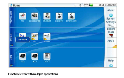 The T-BERD?4000 is a small, compact and handheld test platform designed for all phases of the network lifecycle, from the installation to the maintenance of Access/FTTx networks and triple-play services. Modular in design, the T-BERD?4000 offers field service technicians the highest performance and superior levels of scalability and upgradeability